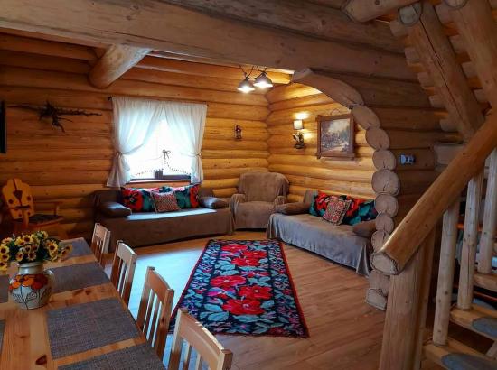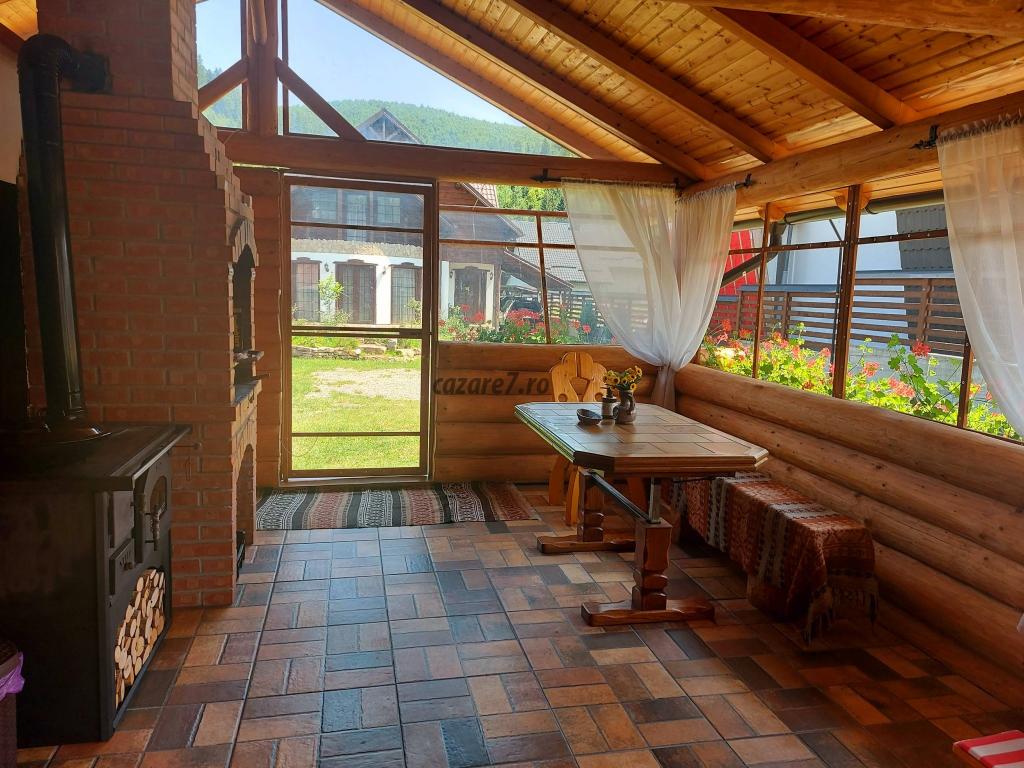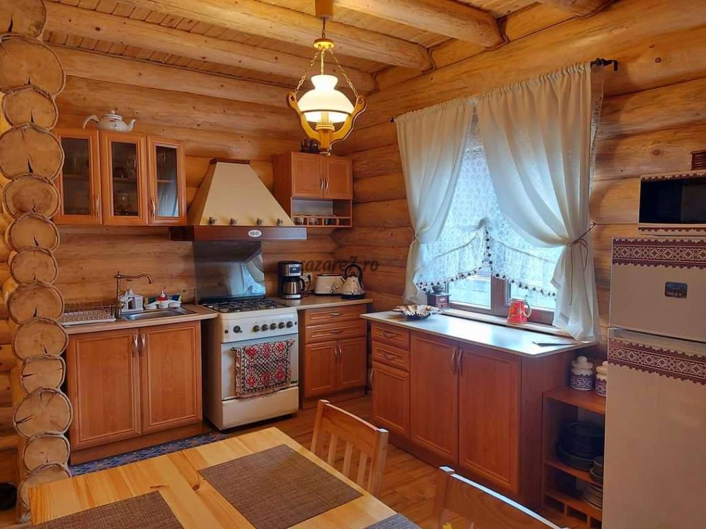 Cabana este ideala pt 3 familii. Dispune de 3 camere cu pat matrimonial ( la cerere pat suplimentar) si living cu doua canapele extensibile. Cabana este dispusa pe doua nivele, la etaj cele 3 camere si o baie, iar la parter living, baie, bucatarie si loc de servit masa. Camerele si livingul sunt dotate cu tv si wi-fi gratuit. Cabana este incalzita cu centrala pe lemne. Bucatarie complet utilata(frigider, aragaz, cuptor, cuptor cu microunde, filtru de cafea, prajitor de paine, fiebator) Terasa mare, inchisa/deschisa, dotata cu gratar si soba cu plita, cuptor si ceaun. Loc de joaca pt copii(trambulina si tobogan) si parcare in curte.